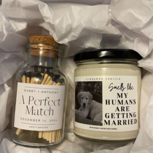 Such a cute engagement gift! I paired it with custom matches. Fast shipping & the seller provided an example of the label with my image provided an hour after I placed the order.